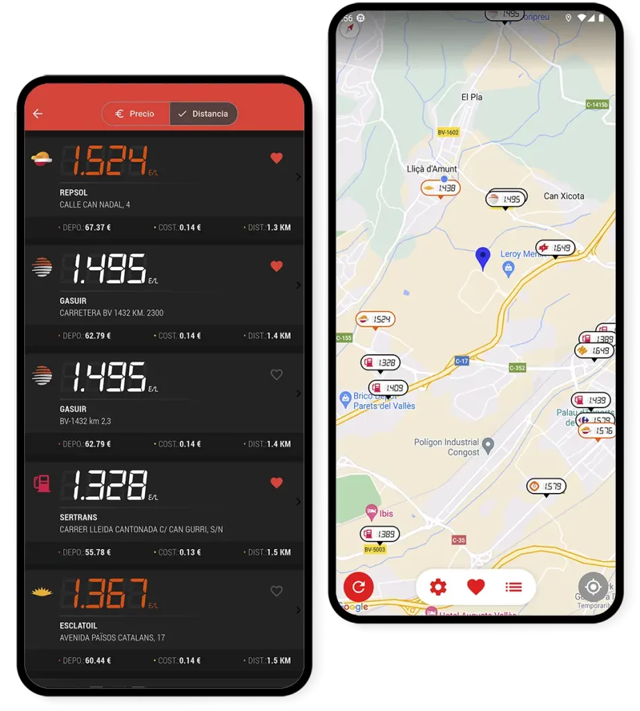 Busca y consulta los precios de las gasolineras más cerca de tu posición.